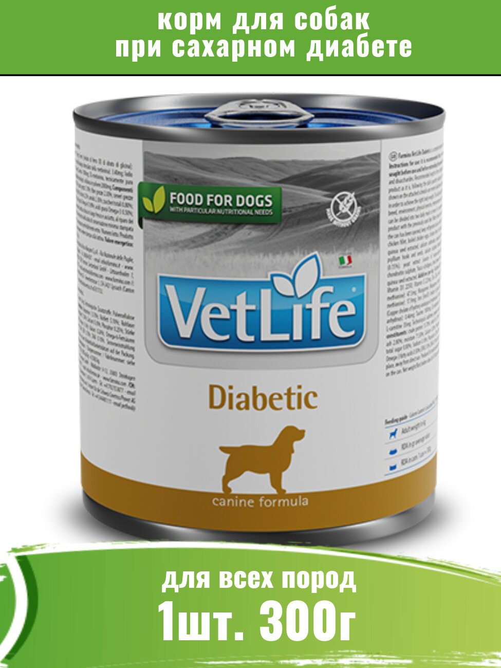 Влажный корм Farmina Vet Life Diabetic для собак при диабете, 300 г, 1 шт.