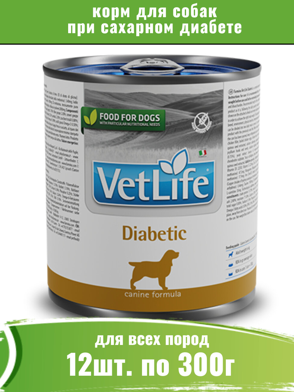 Купить Farmina Vet Life Dog Diabetic 12шт по 300г корм для собак при диабете