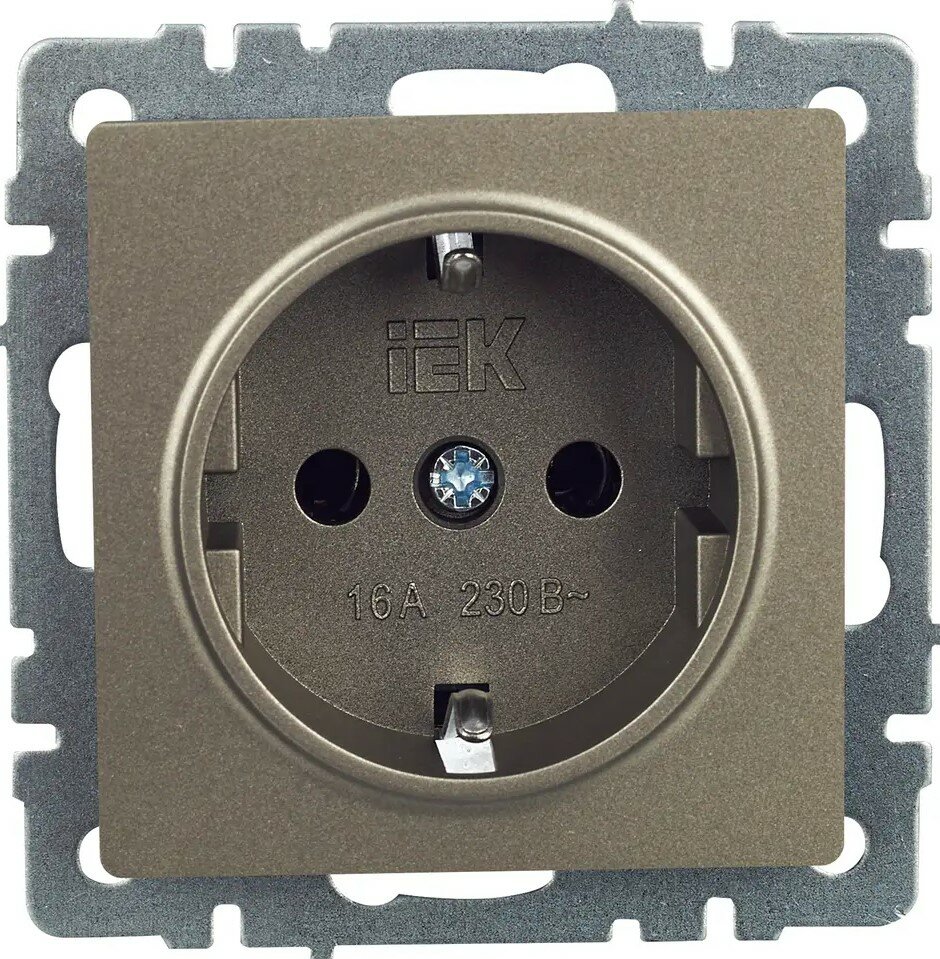 Розетка одноместная Бронза с заземлением без защитных шторок 16А IEK Brite