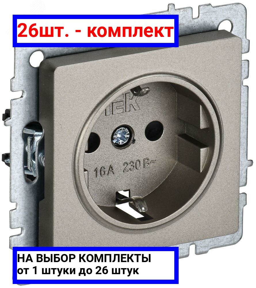 Купить 26шт. - BRITE Розетка с заземлением без защитных шторок 16А РС11-1-0-БрШ шампань / IEK; арт. BR-R11-16-K37; оригинал / - комплект 26шт