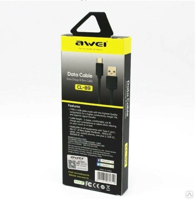 Ниже Вы можете прочитать отзывы на Кабель Awei USB - USB Type-C (CL-89), 1 м, черный, ознакомится с подробными характеристиками, посмотреть интересные обзоры и фотографии на Кабель Awei USB - USB Type-C (CL-89), 1 м, черный.
