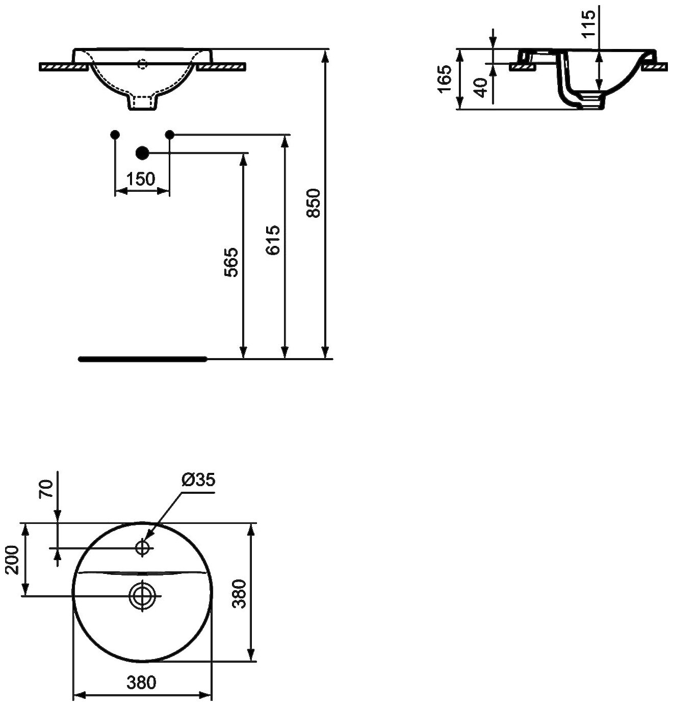 Раковина мебельная Ideal Standard Connect круглая встраиваемая на столешницу 38 см (E504101)