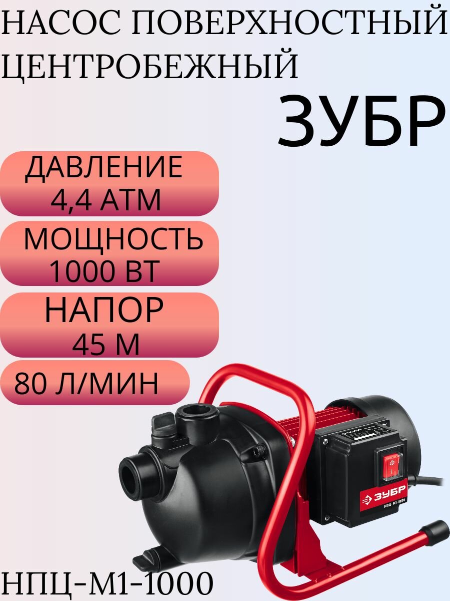 ЗУБР 1000 Вт, насос поверхностный центробежный НПЦ-М1-1000 Мастер