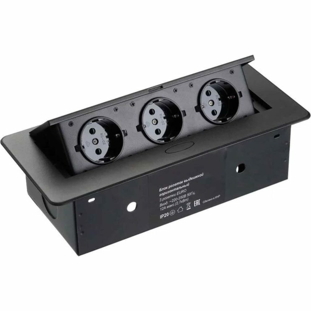 Выдвижная розетка Inrior выдвижной встраиваемый блок розеток, на 3 euro розетки, без проводки, черный TORO-01-20