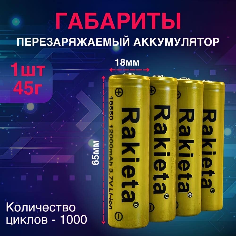 Батарейки аккумуляторные 18650 1 шт/ аккумулятор 18650 3.7V 12000mAh Li-ion Rakieta, 1 шт