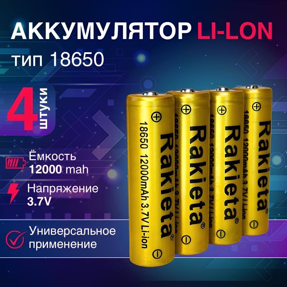 Аккумулятор литий-ионный Rakieta-18650 12000 мАч 3.7V, аккумуляторные батареи, комплект из 4-х штук