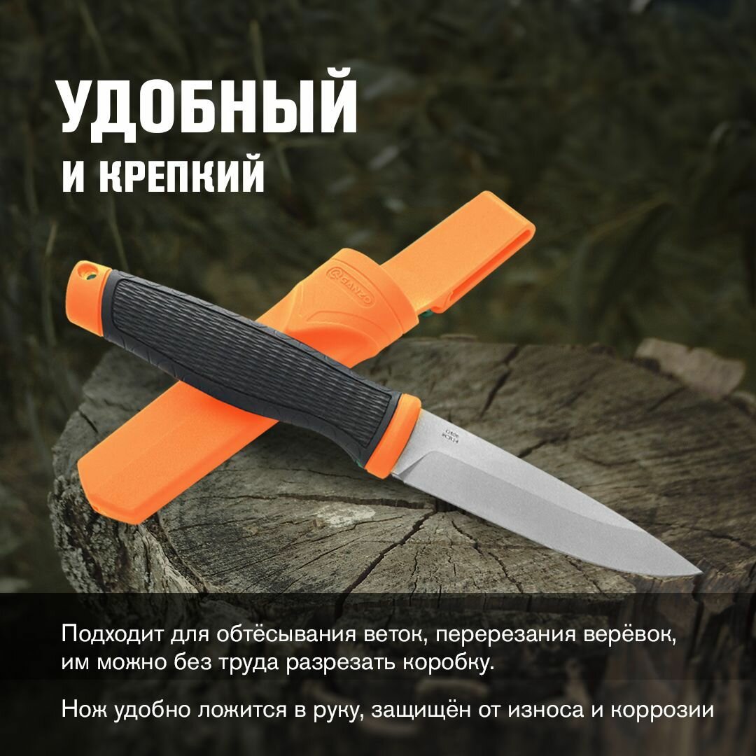 Нож фиксированный с ножнами туристический тактический походный для выживания и охоты GANZO G806 оранжевый