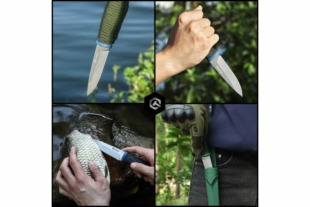 Нож фиксированный с ножнами туристический тактический походный для выживания и охоты Ganzo G806 черный c зеленым