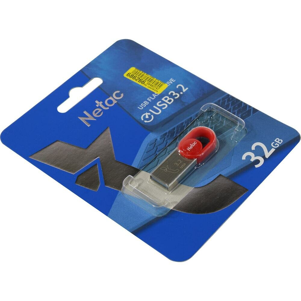 Флешка USB NETAC UM2 32ГБ, USB3.2, серебристый и красный [nt03um2n-032g-32re]