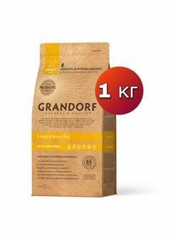 Ниже Вы можете прочитать отзывы на Гипоаллергенный низкозерновой сухой корм Grandorf с пробиотиками для собак мелких пород 4 мяса, 1 кг, ознакомится с подробными характеристиками, посмотреть интересные обзоры и фотографии на Гипоаллергенный низкозерновой сухой корм Grandorf с пробиотиками для собак мелких пород 4 мяса, 1 кг.