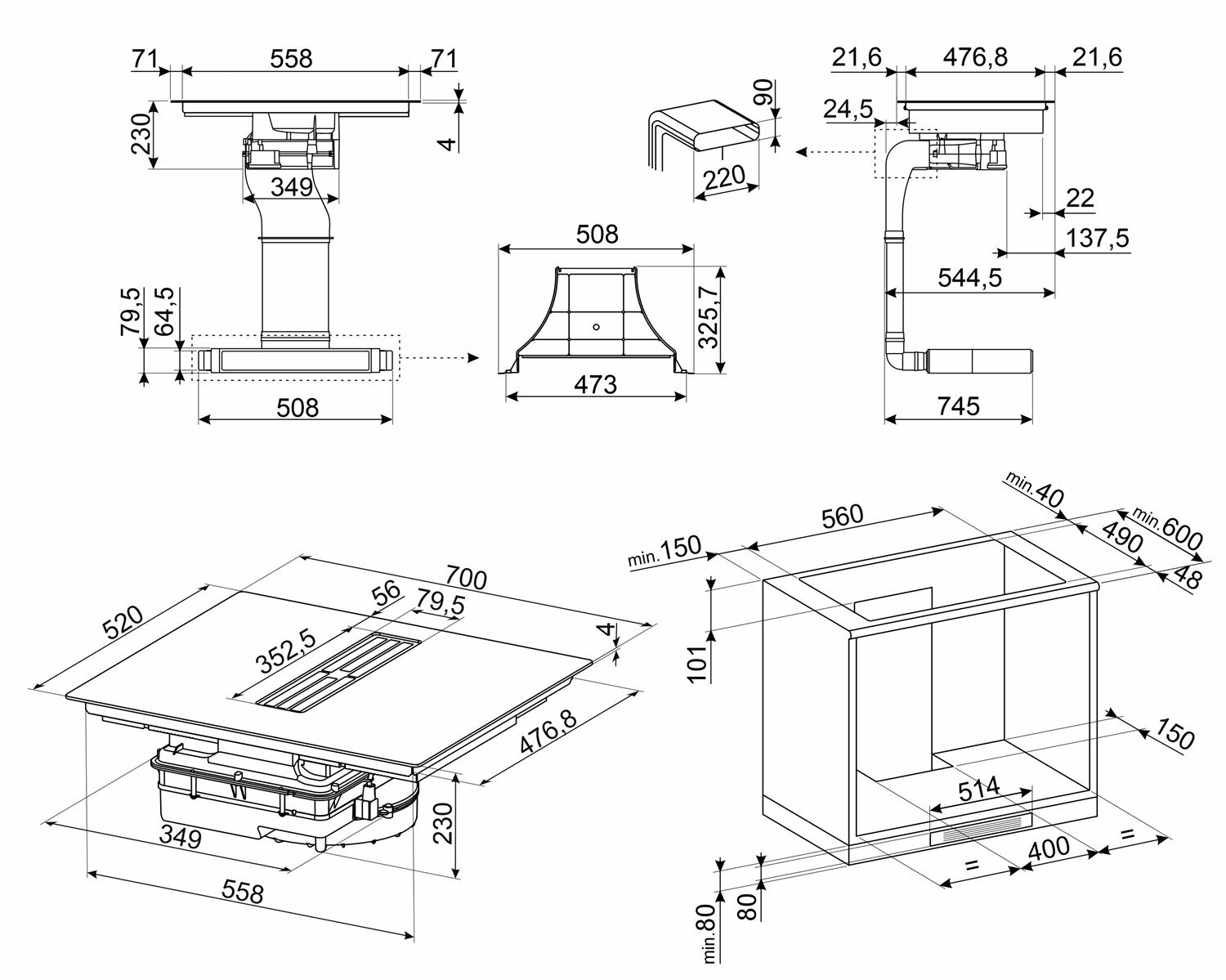 Индукционная варочная панель со встроенной вытяжкой Smeg HOBD472D