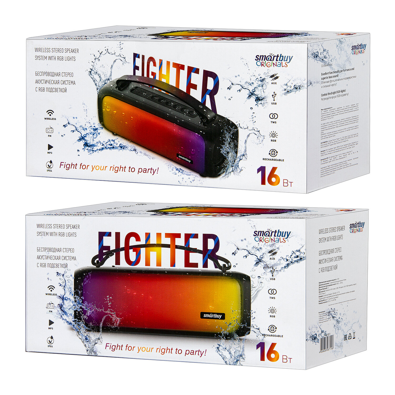 Купить Портативная колонка Smartbuy FIGHTER, 16 Вт, BT 5.0, FM, microSD, USB, AUX, подсветка