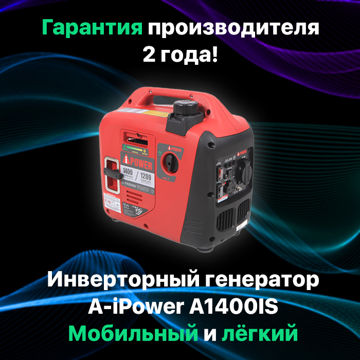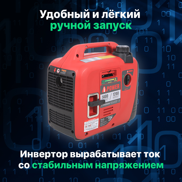 Генератор инверторный бензиновый A- IPOWER A1400IS 1,4 кВт, 12кг бензогенератор с ручным запуском двигателя и автоматическим регулятором напряжения, электростанция интересное: