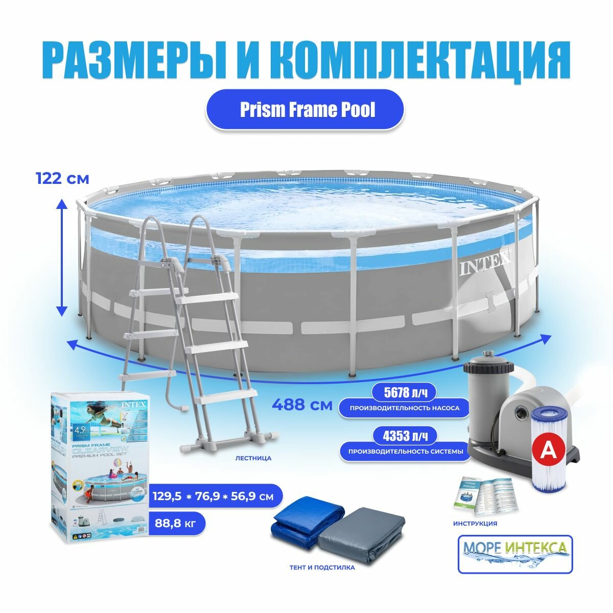INTEX Каркасный бассейн 26730 Intex Prism Frame Clearview 488*122 см, картриджный фильтр, аксессуары 26730 интересное: