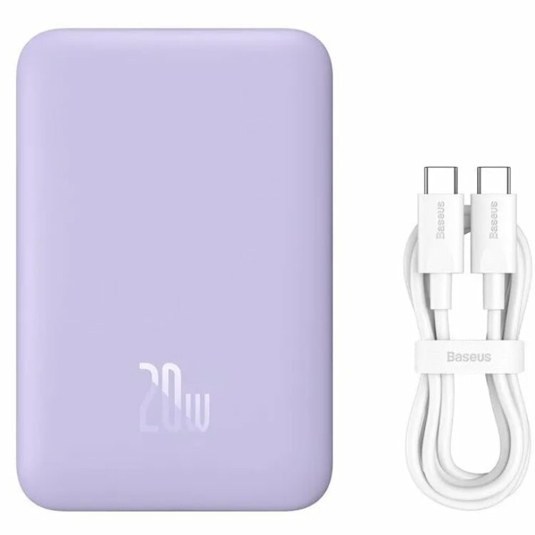 Купить Внешний магнитный беспроводной аккумулятор BASEUS Magnetic Mini, 10000 mAh, 20W, с кабелем Type-C to Type-C 50 см, Purple