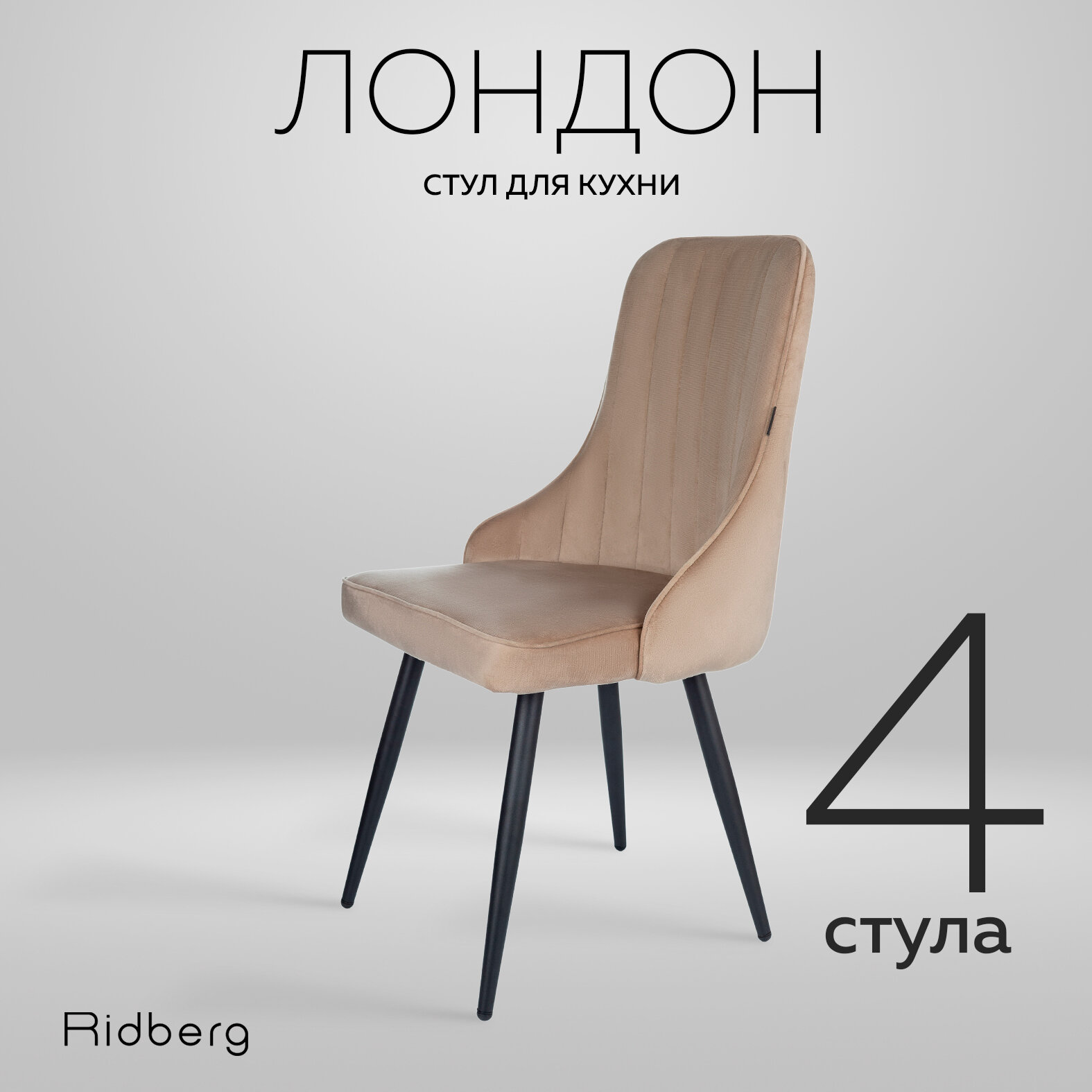 Комплект стульев для кухни и гостиной Ridberg Лондон Velour, 4шт, бежевые, для дома, обеденный стул мягкий с боковой поддержкой спины