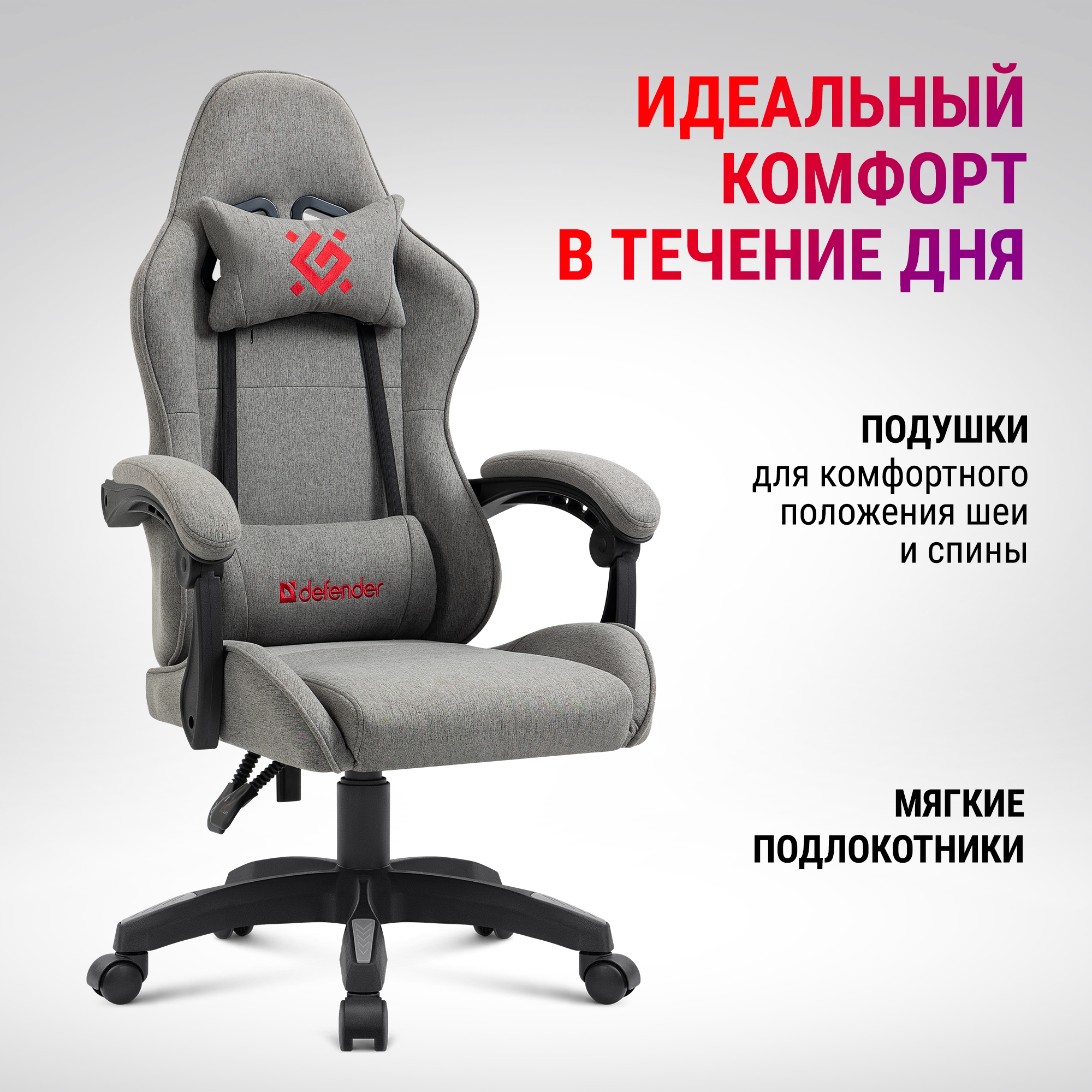 Кресло компьютерное / игровое кресло / Геймерское кресло Defender Cosmic Черный/Серый, газлифт класс 4, 2 подушки