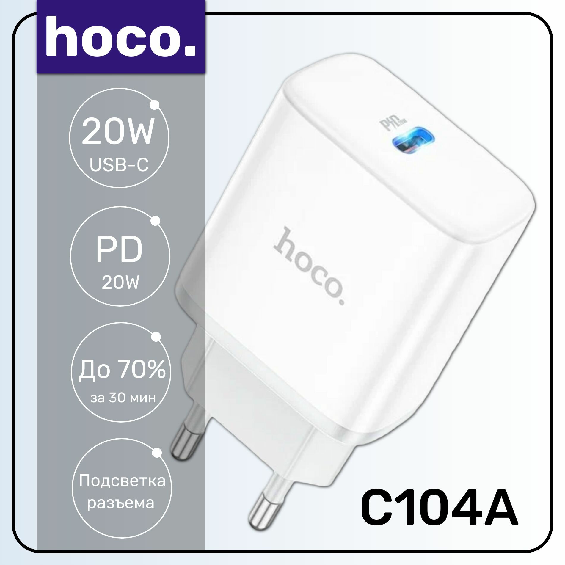 СЗУ HOCO C104A Stage 1xUSB-C, 3А, PD20W, QC3.0 (белый) интересное: