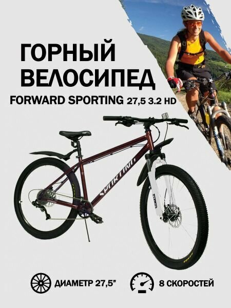 Велосипед FORWARD SPORTING 27,5 3.2 HD (27,5" 8 ск. рост. 19") 2023, темно-красный/серебристый