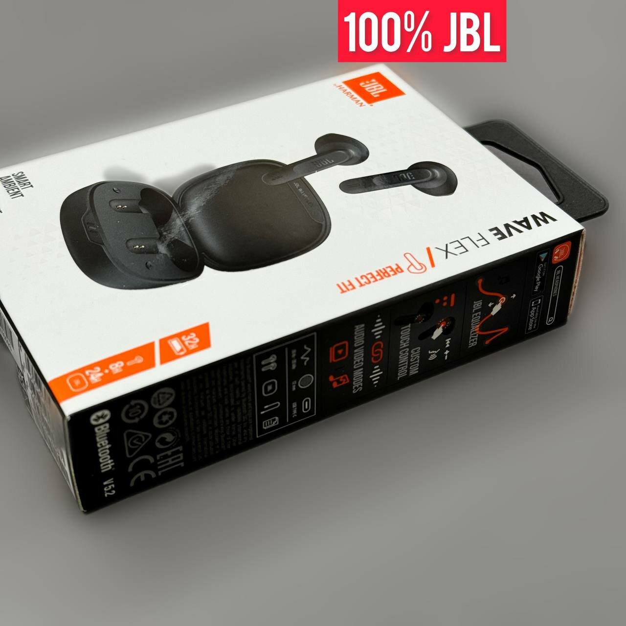 Блютуз наушники беспроводные JBL Wave Flex, Весит всего 3,8 грамма, конструкция наполовину в ухе, удобна в носке, время автономной работы составляет 32 часа, шумоподавление во время звонков