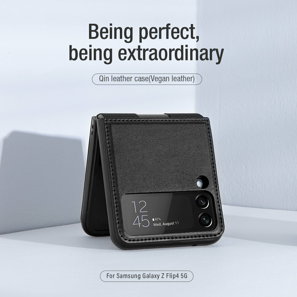Кожаный чехол с подставкой Nillkin Qin Case (plain leather) для Samsung Galaxy Z Flip4 5G (Z Flip 4 5G), черный интересное: