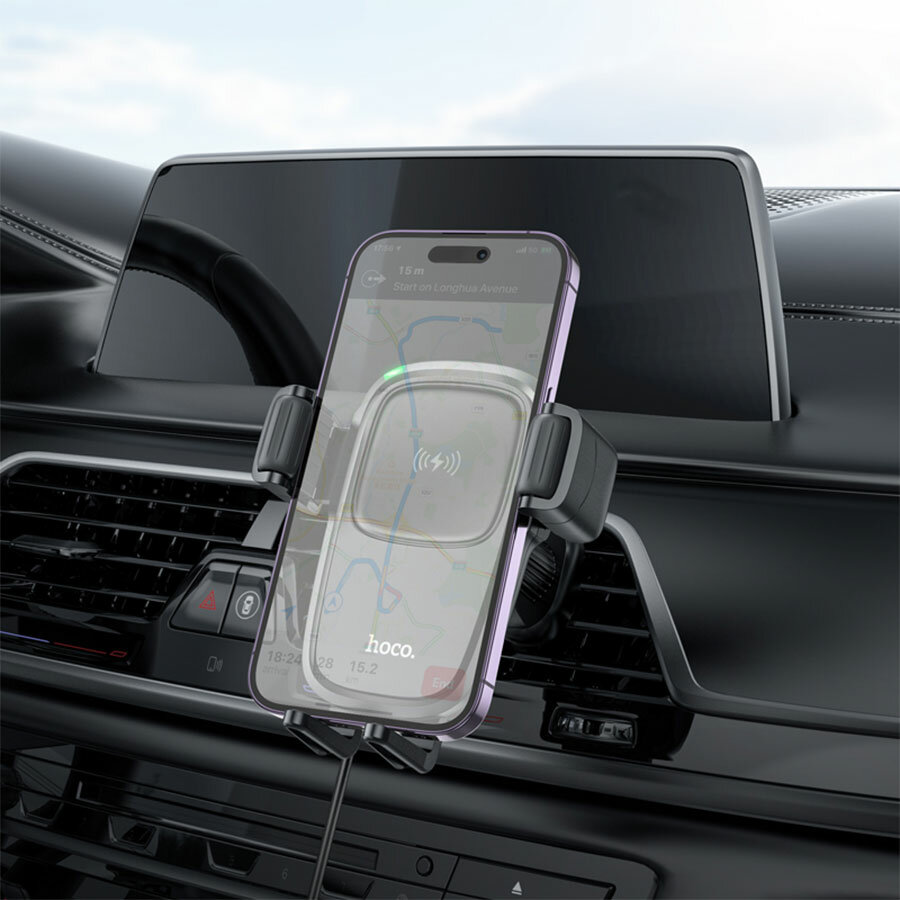 Держатель автомобильный HOCO HW1 на воздуховод c беспроводной зарядкой - черный