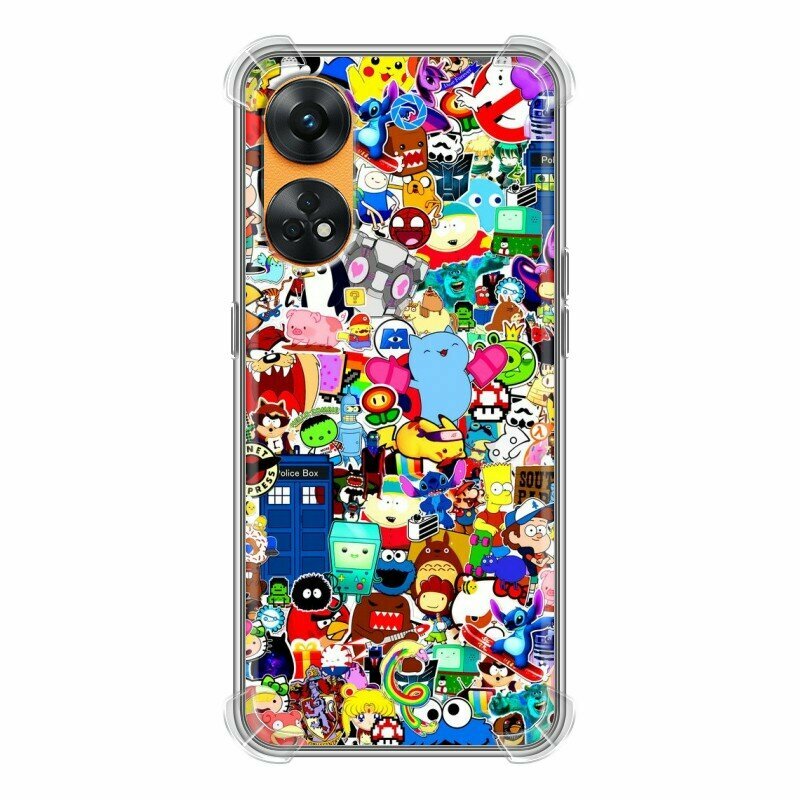 СохранитьДизайнерский силиконовый с усиленными углами чехол для Оппо Рено8 Т / OPPO Reno8 T Яркие стикеры интересное: