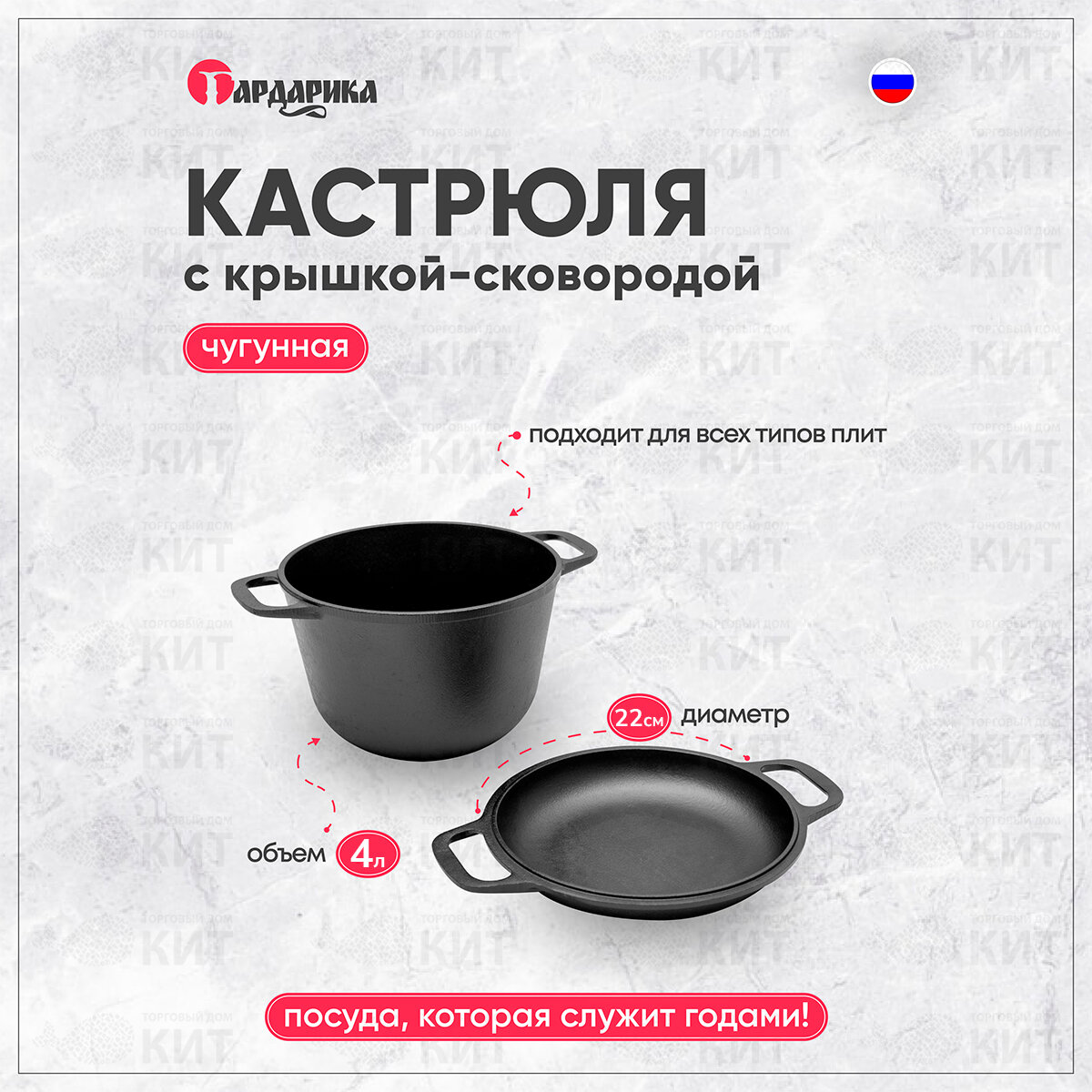 | Дополнительная информация | Кастрюля Гардарика чугунная с крышкой-сковородой |
