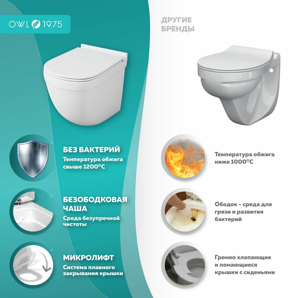 Унитаз подвесной OWL Eld Cirkel-H TOWLT190101 безободковый с сиденьем микролифт, белый интересное: