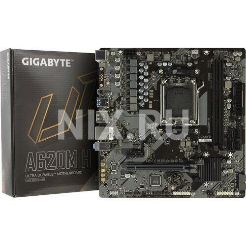 Материнская плата GIGABYTE A620M H (Socket AM5/AMD A620/2xDDR5/PCI-Ex16/PCI-Ex1/M.2/SB7.1/GLAN/DisplayPort/HDMI/mATX) RET
