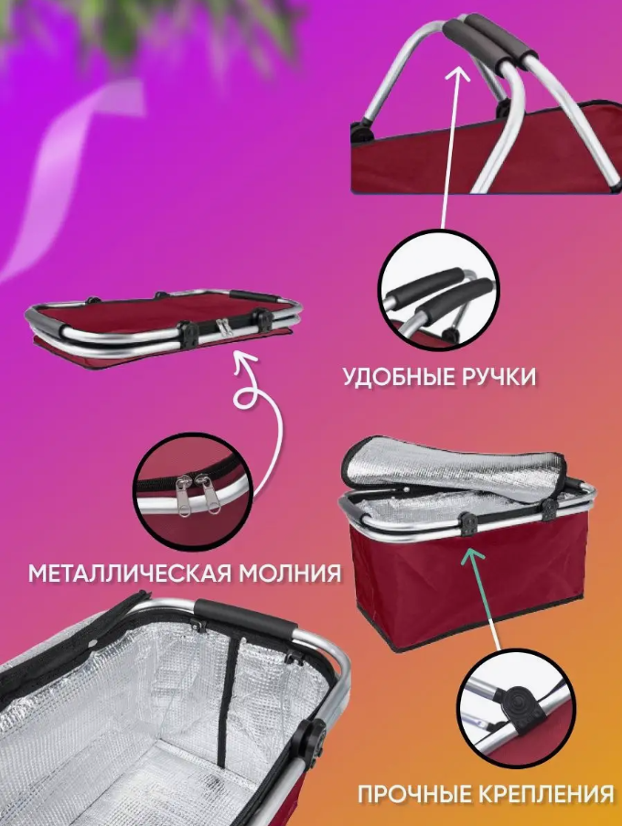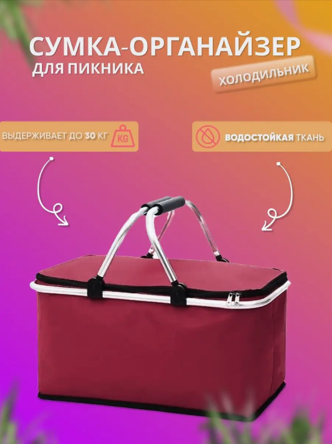 Термосумка холодильник складная 30 литров бордовая интересное: