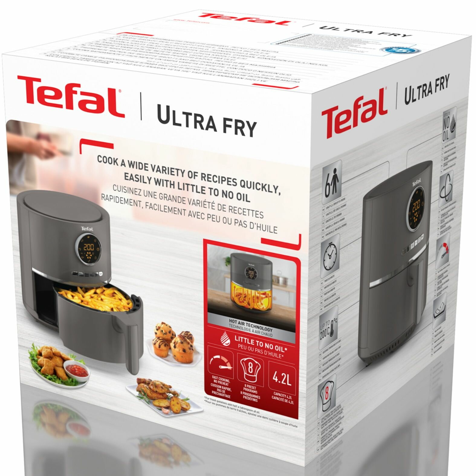 Купить Аэрогриль Tefal Air Fry Ultra EY111B15, 4.2 л, с дисплеем, 8 автоматическими программами, таймером и установкой температуры, угольно-серый
