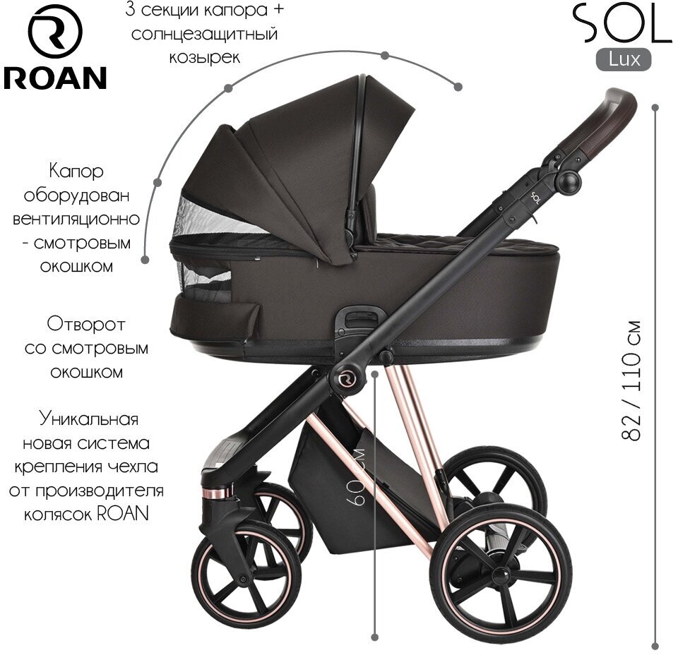 Коляска 2 в1 Roan Sol Lux Choco/Rose Gold/ручка тем.коричневый