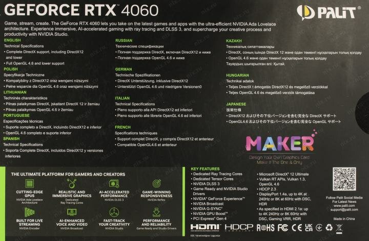 | Отзыв: | Цена очень привлекательна, всё пломбы на месте при вскрытии. ранее сказал про исполнение среднее но и карта оч. мощная, возможно сэкономили ради низкой цены. поменял вместо 3050. а общем всё супер! Работает в связке Intel 13400f на z790 чипсете. для тех кто спрашивает о полноценном PCIe x16 что таких не бывает!?.. они есть, даже на официальном сайте Palit версия v1. |