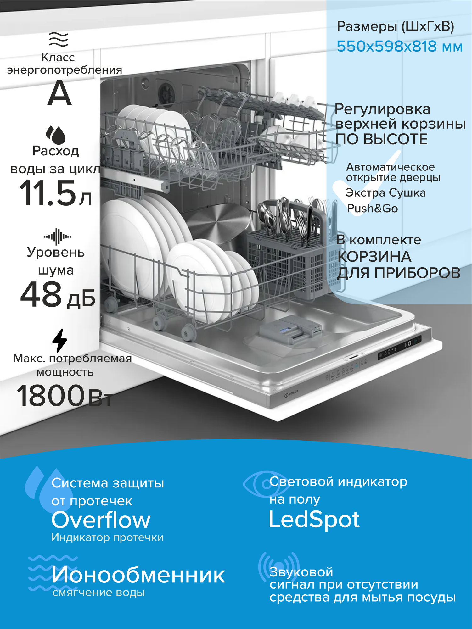 Посудомоечная машина встраив. Indesit DI 4C68 1900Вт полноразмерная интересное: