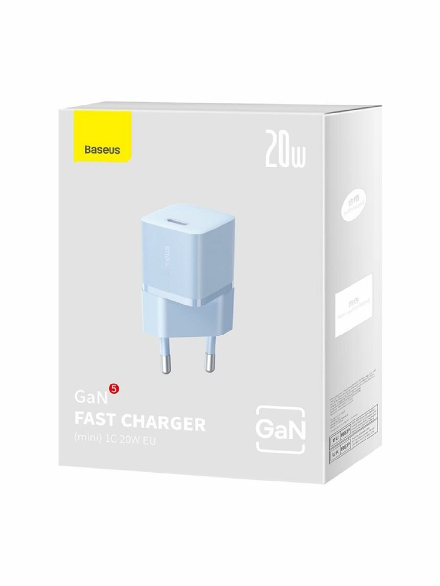 Зарядное устройство Baseus GaN5 Mini USB-C Fast Charger, 20Вт, быстрая зарядка, голубой