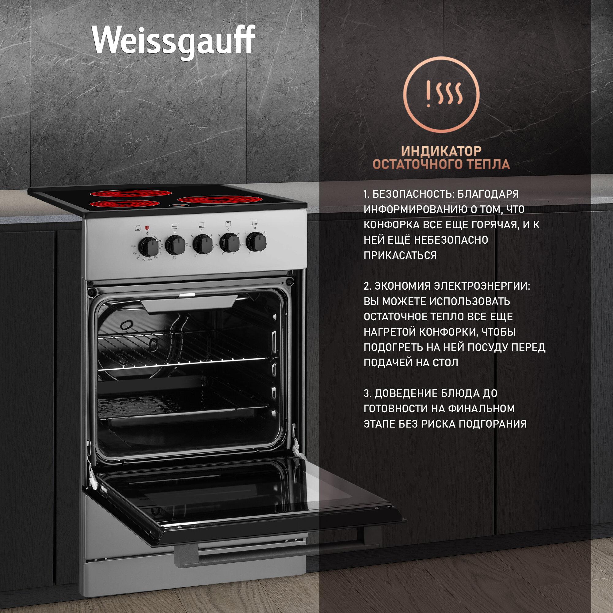 Купить Электрическая плита Weissgauff WES E2V05 S 3 года гарантии, Объем 50 литров, Технологичные поворотные переключатели Soft Switch, Термостат духового шкафа