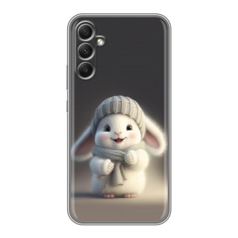 СохранитьДизайнерский силиконовый чехол для Гэлакси А34 5Ж / Samsung Galaxy A34 5G Зайчик в шапке и шарфе интересное: