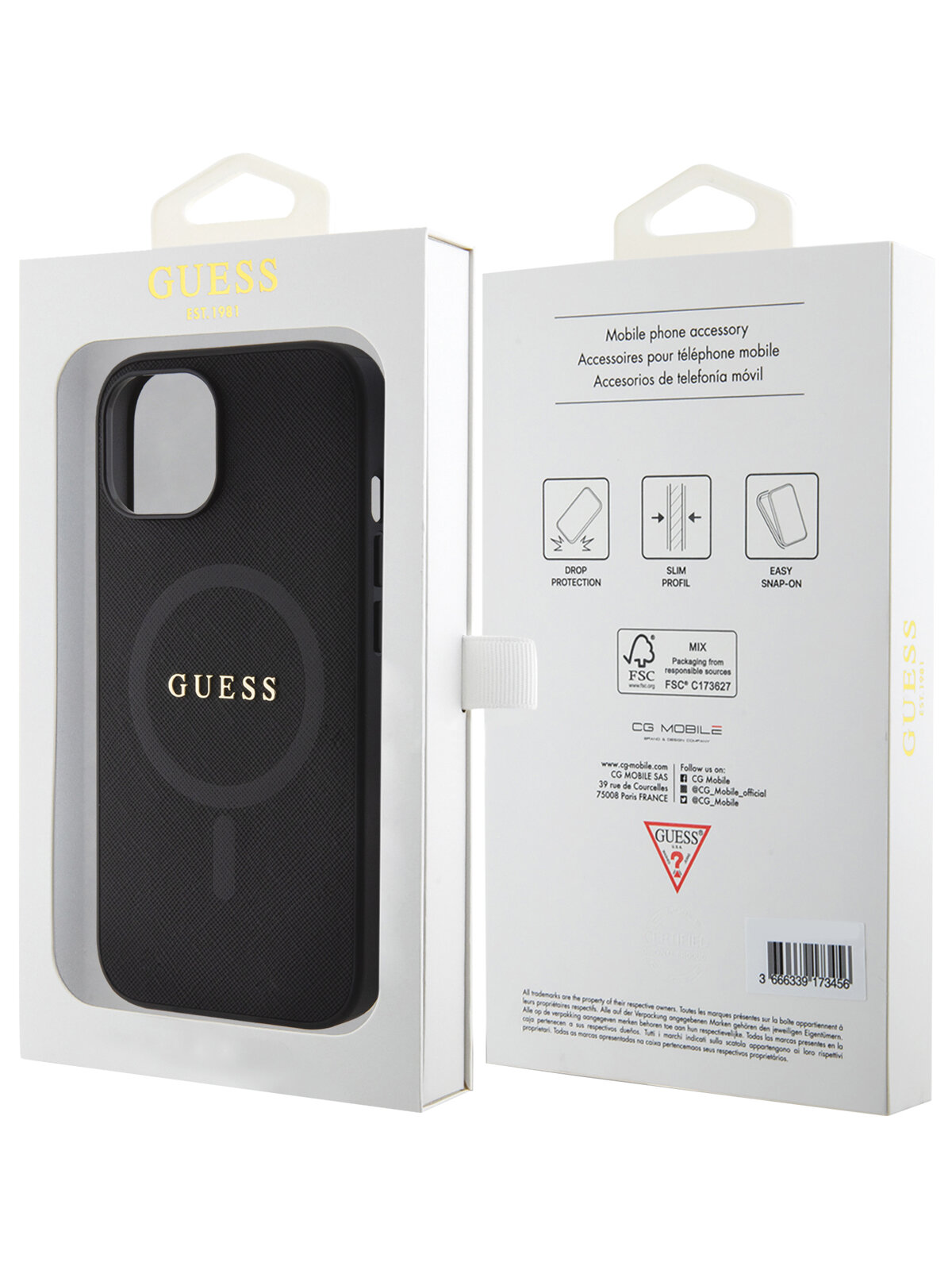 Купить Guess для iPhone 15 чехол PU Saffiano with metal logo Hard Black (MagSafe)