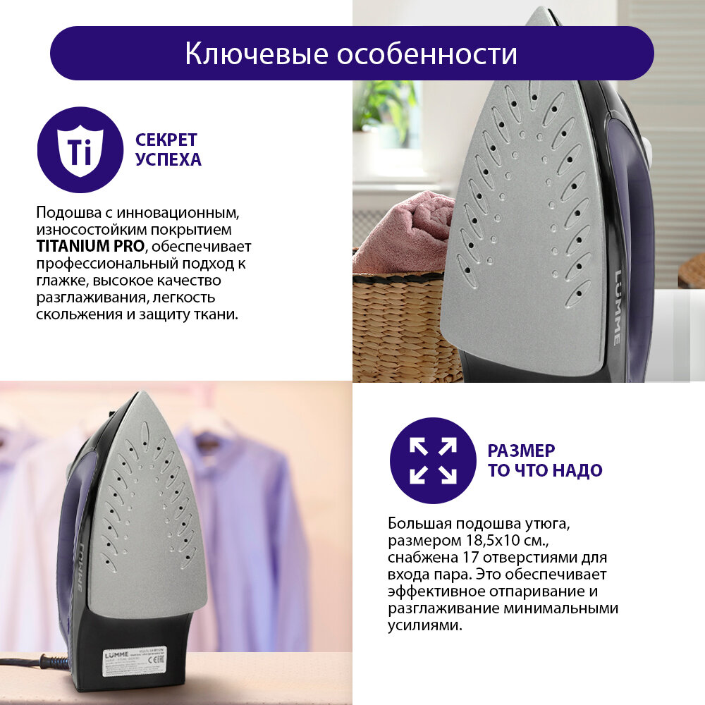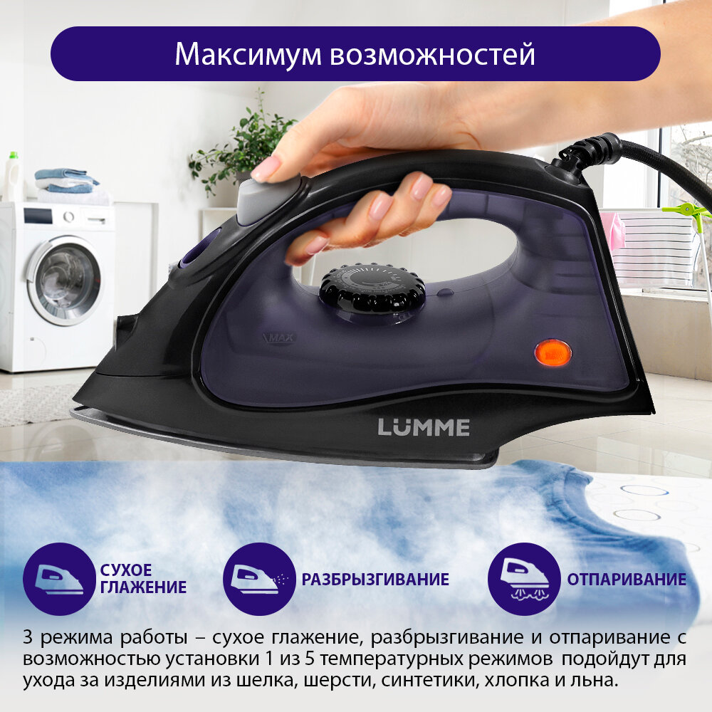 Утюг Lumme / Люмме LU-IR1130A с отпаривателем антипригарное тефлоновое покрытие мощность 1800Вт / бытовая техника интересное: