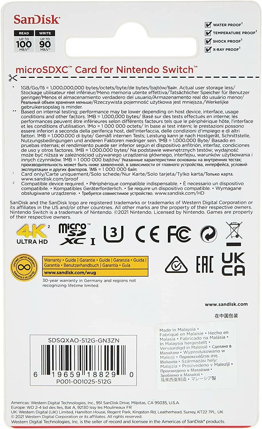 Флеш карта microSD 512GB SanDisk microSDXC Class 10 UHS-I A1 C10 V30 U3 for Nintendo Switch 100/90 MB/s интересное: