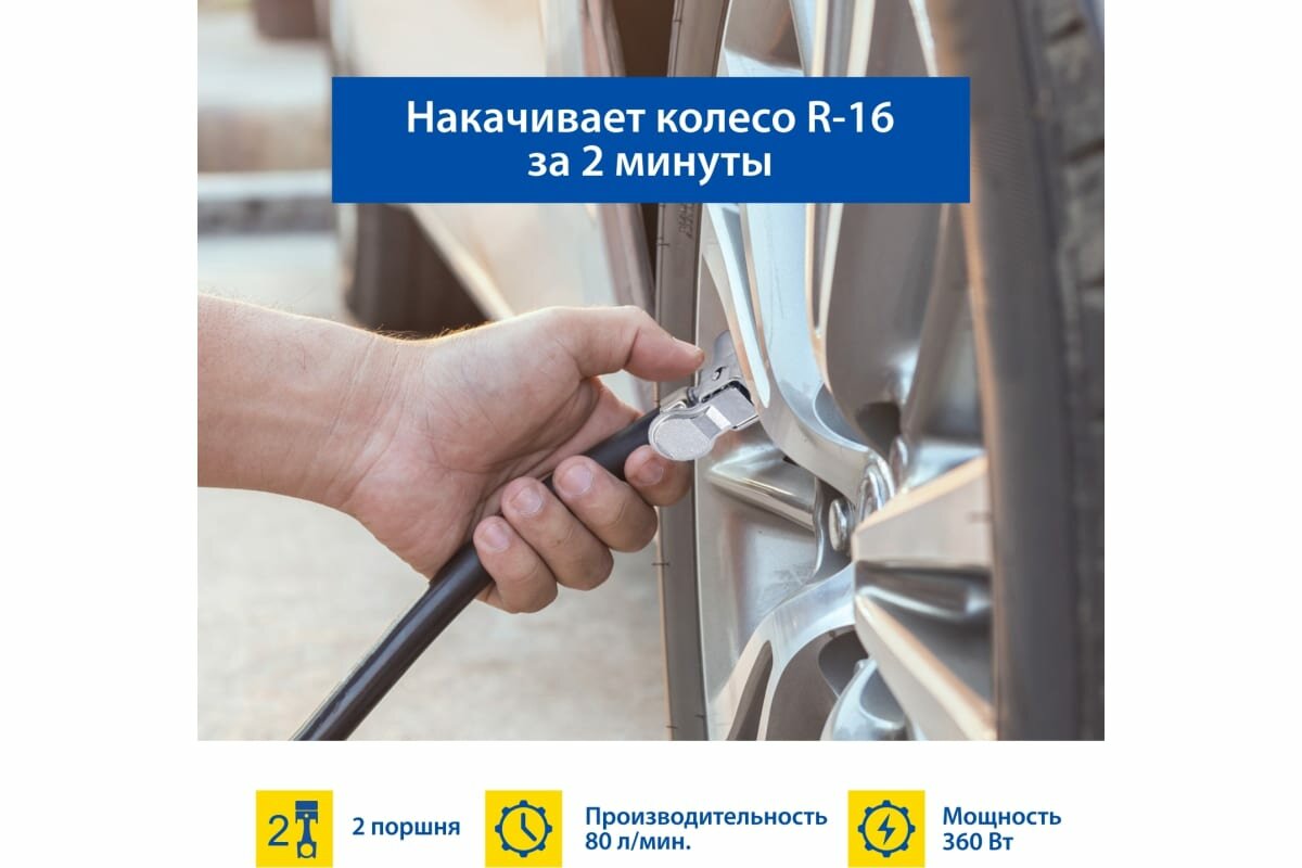 Воздушный компрессор Goodyear GY-80L 80 лмин, двухпоршневой, питание от АКБ, съемный витой шланг, с, GOOD YEAR GY000118 (1 шт.)