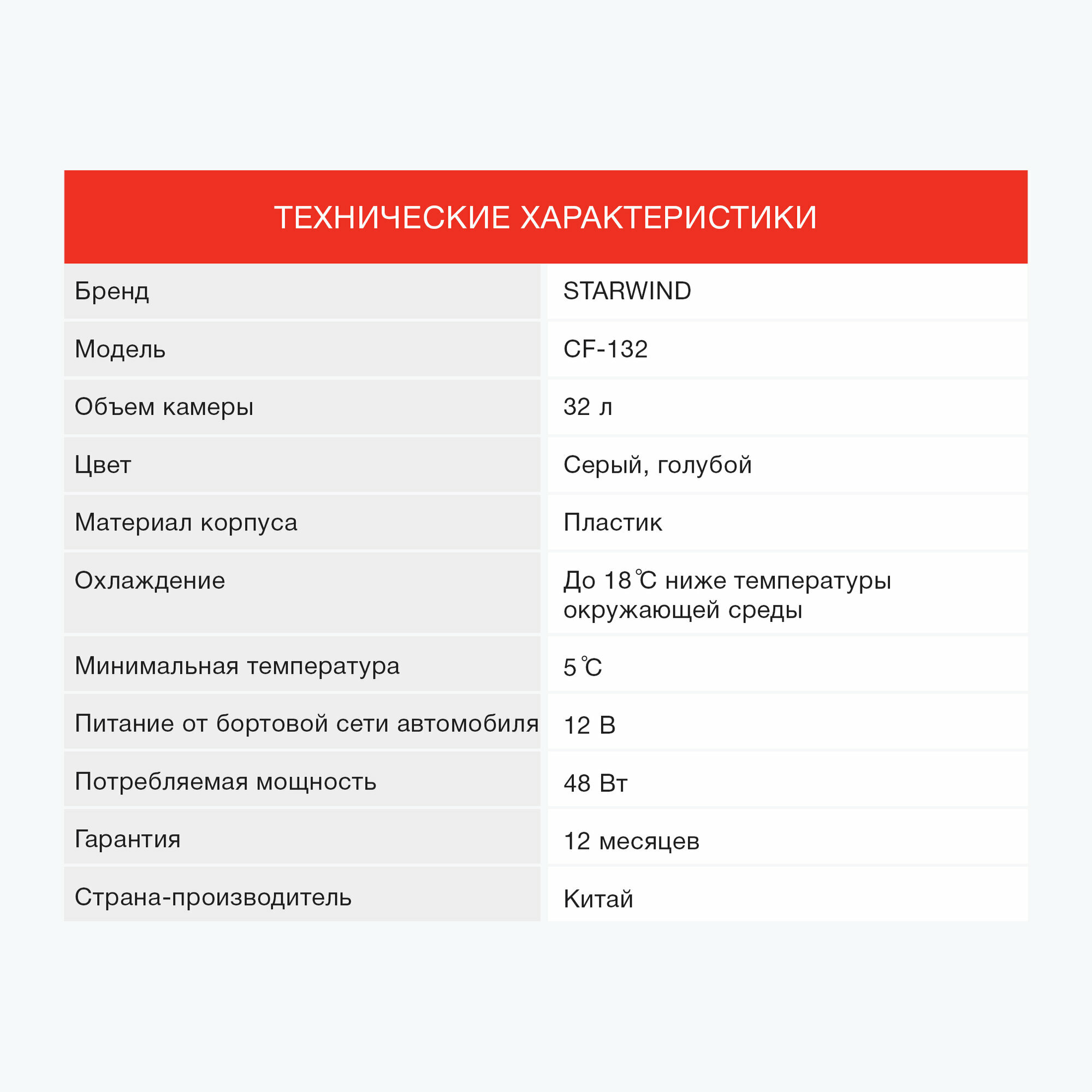 Starwind Автохолодильник CF-132 32л 48Вт серый/голубой 1шт в упак. 479033
