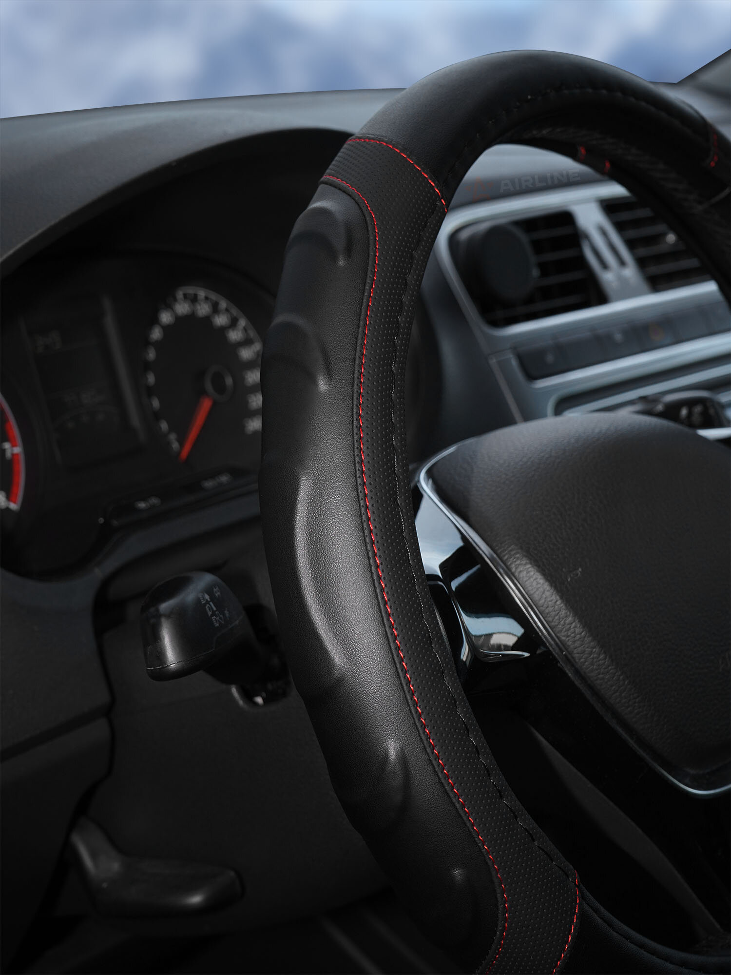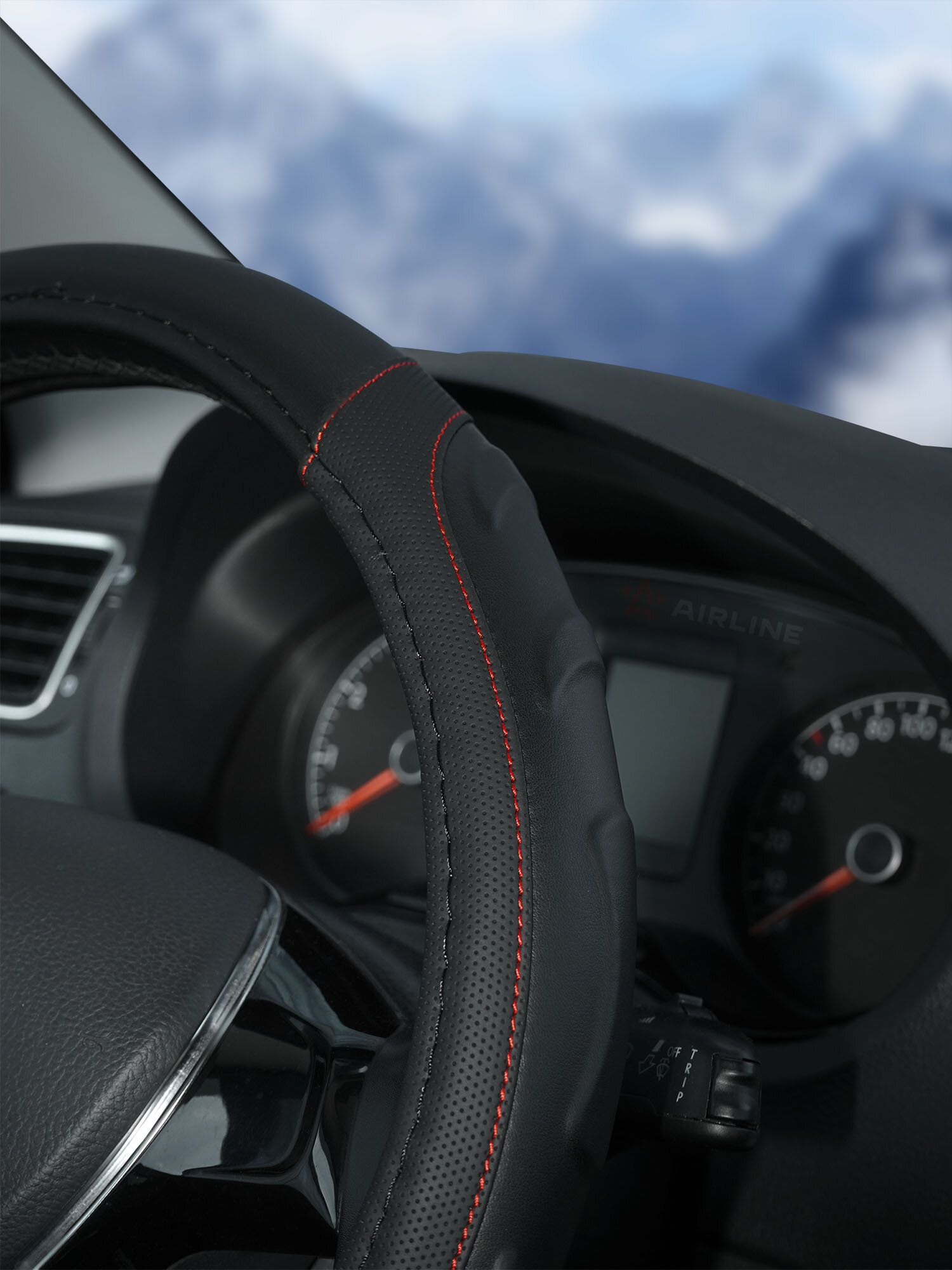 Оплетка на руль, искусст. кожа, рельефная, черная, красн. прошивка, 38 см/М AWS-LI-22M AIRLINE интересное: