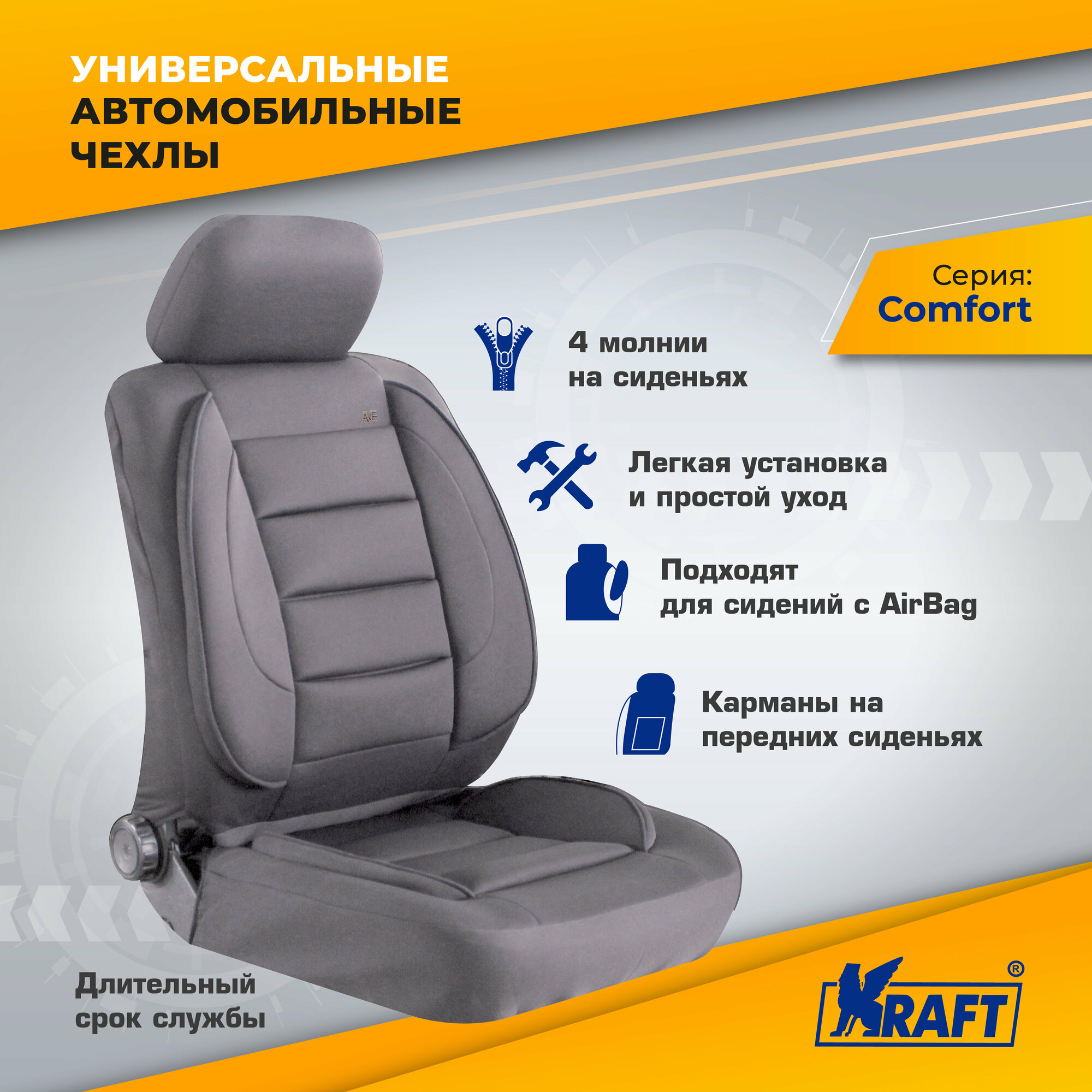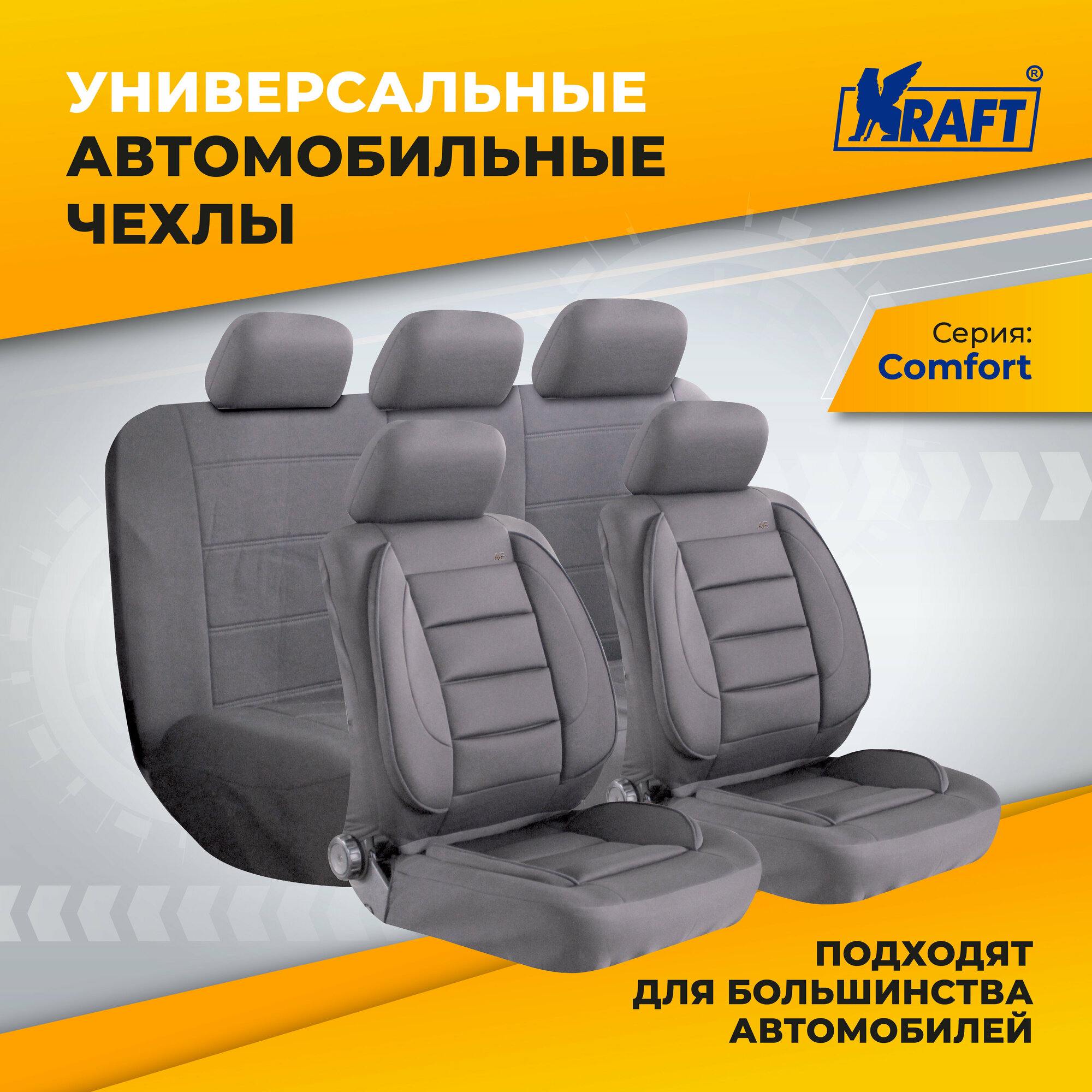 Купить Чехлы Универсальные Comfort Премиум Полиэстер Srs Airbag 11 Предметов Поролон 5Мм 4 Молнии Бокподдержка Спины Серые Kraft арт...