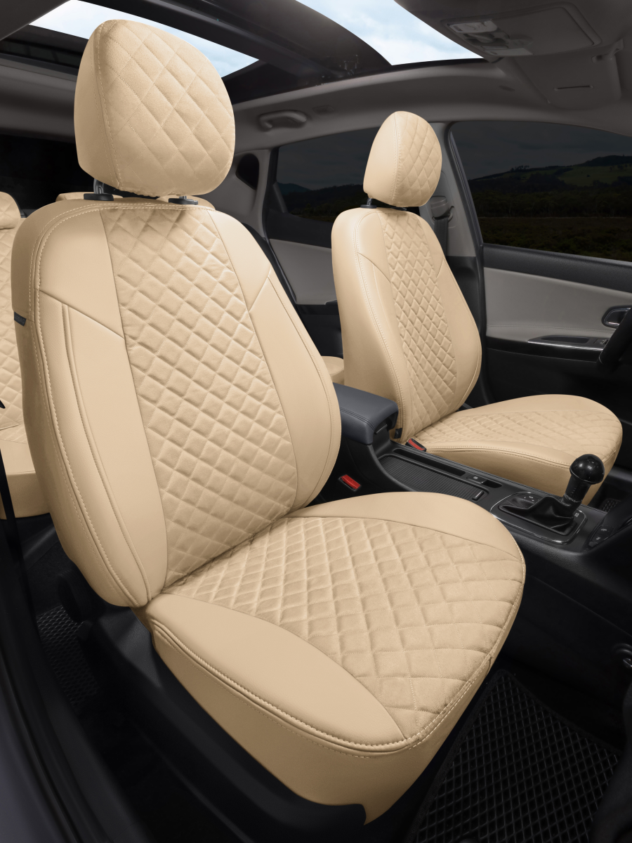 Комплект чехлов Автопилот Алькантара ромб LADA Granta Sd/Hb / Kalina Cross / Datsun on-Do / mi-Do Бежевый + Бежевый