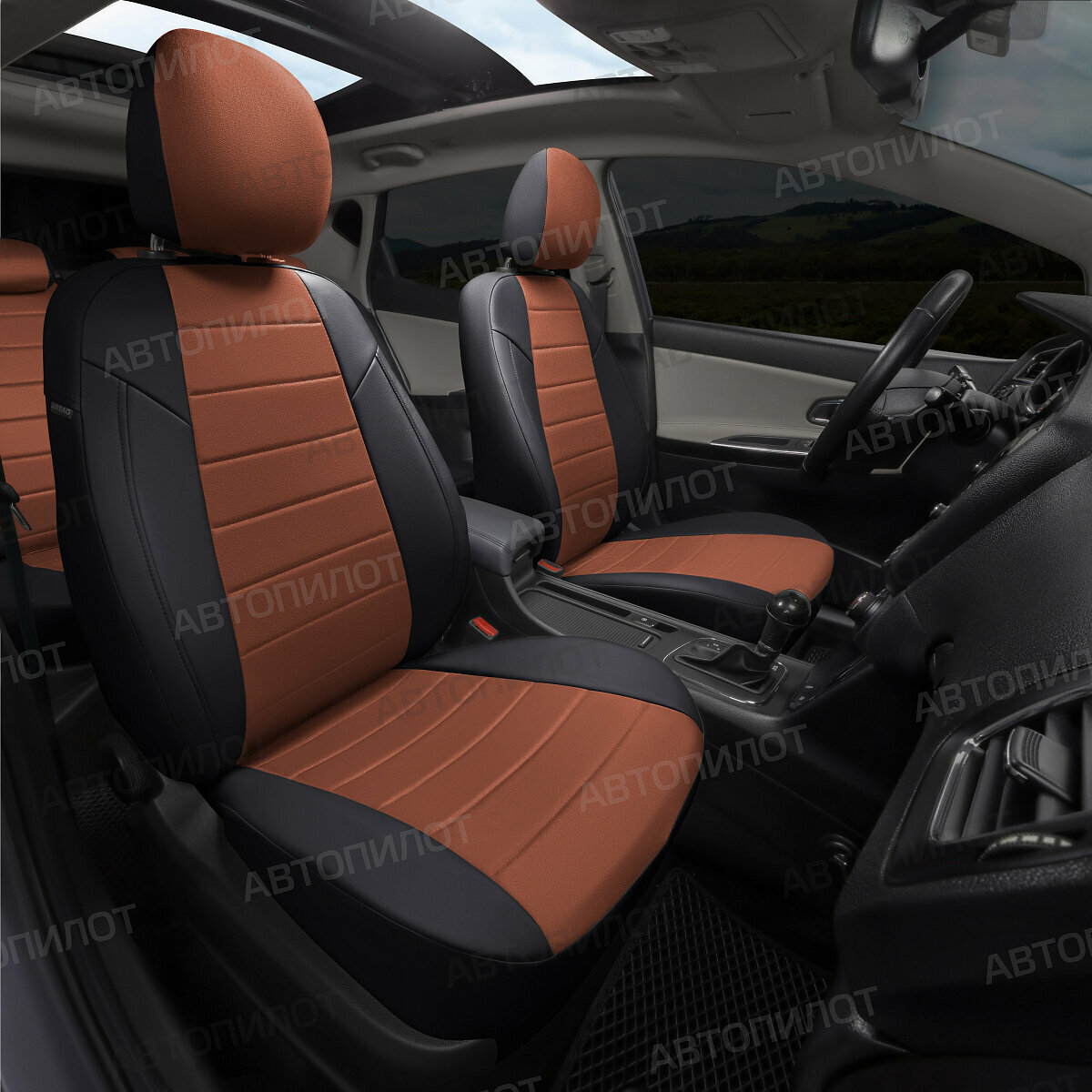 Комплект чехлов Автопилот Экокожа LADA Granta Sd/Hb / Kalina Cross / Datsun on-Do / mi-Do Черный + Коричневый