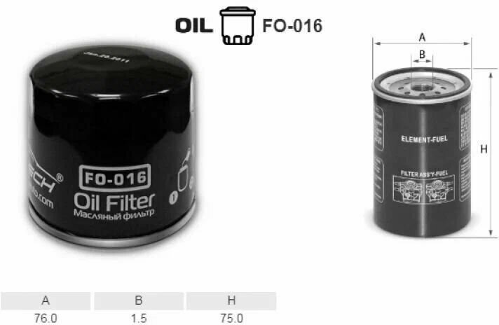 FORTECH FO-016 Фильтр масляный FORD FOCUS II (2005-2011) FORD FOCUS III (2011- ) FORD FIESTA VI (2008- ) CHERY AMULET A15 (2003-2013)