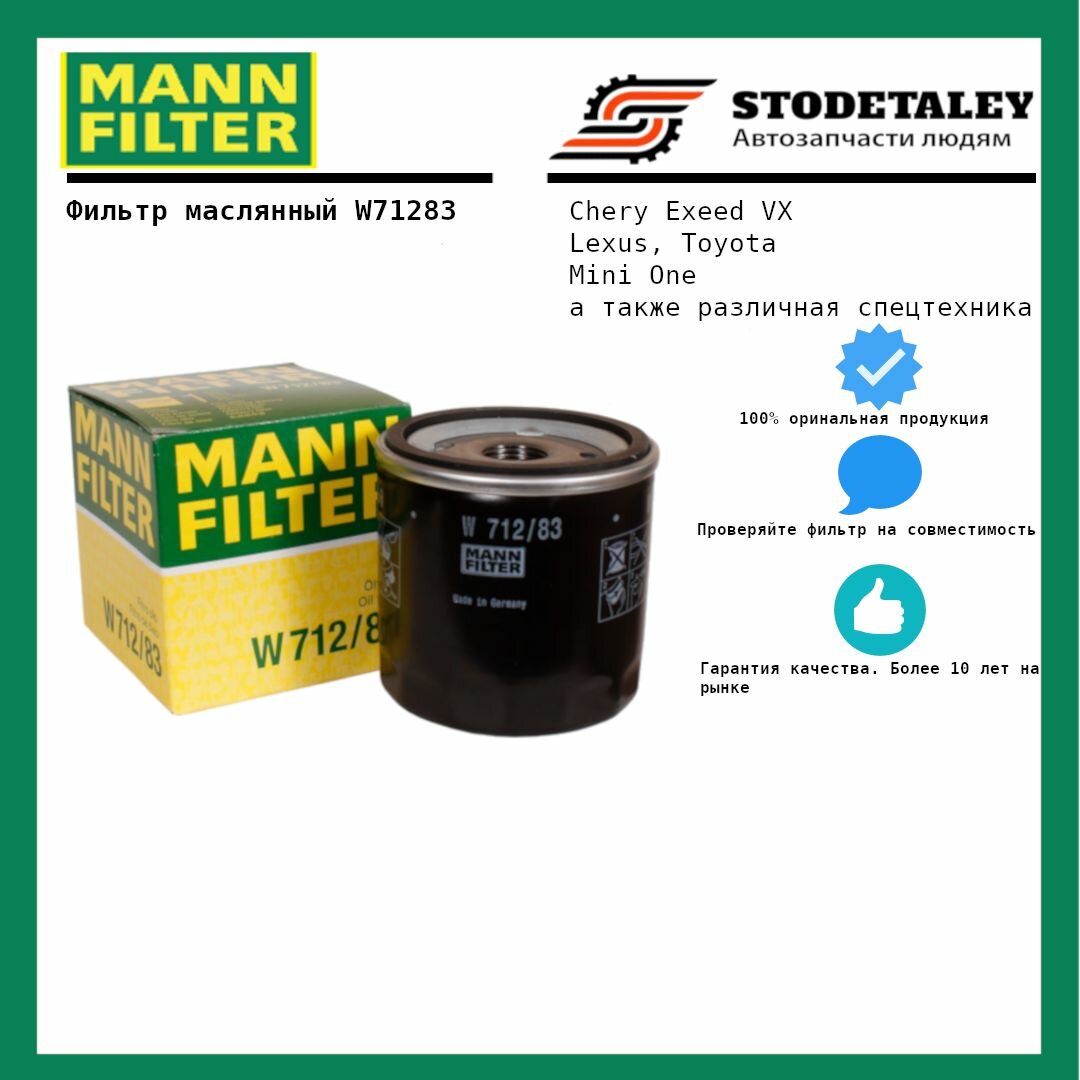Фильтр масляный для Тойота Хайлюкс 2015-2020 год выпуска (Toyota Hilux) MANN-FILTER W 712/83