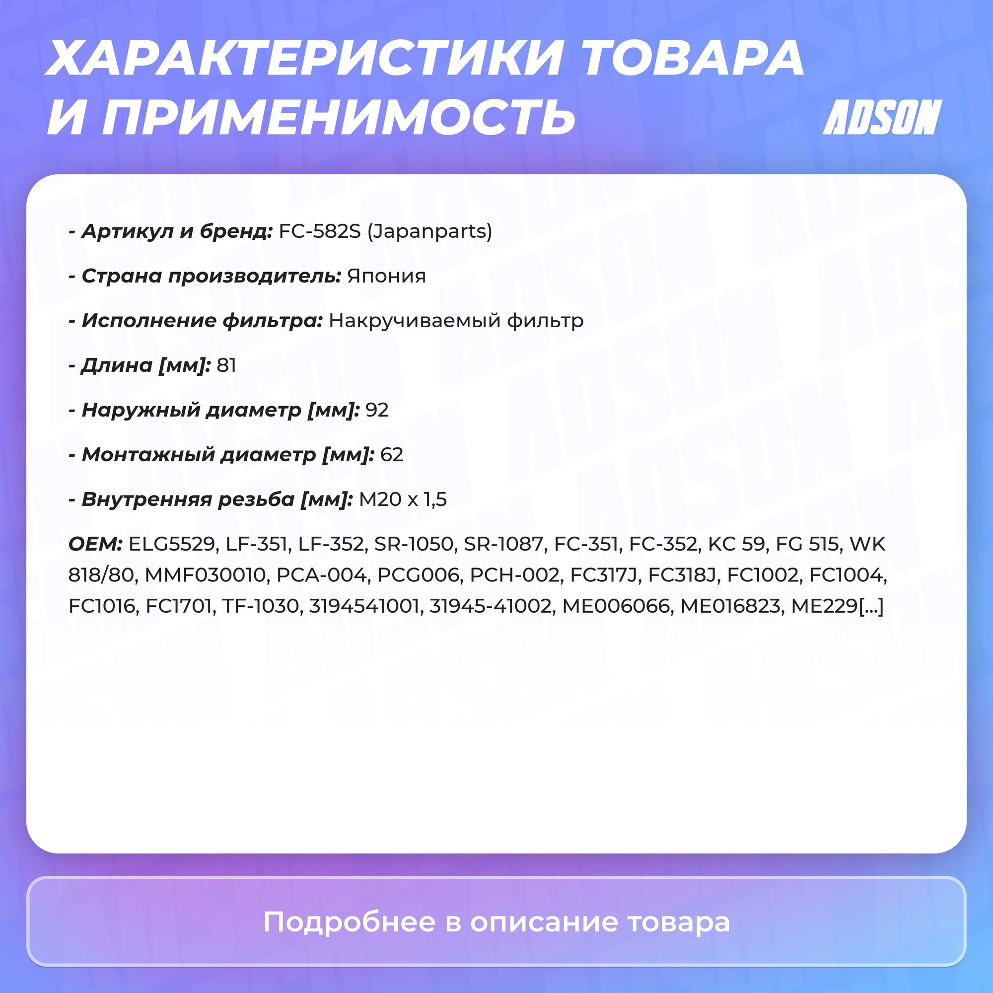 | Код производителя | FC582S |